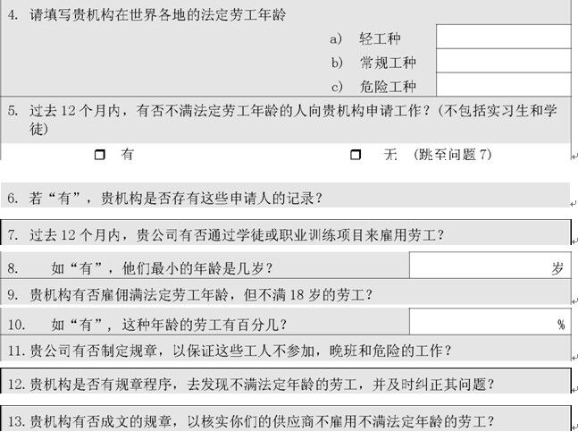 3. 貴機(jī)構(gòu)是否通過外部組織(如:勞工組織,公安局等)審核工作的年齡?